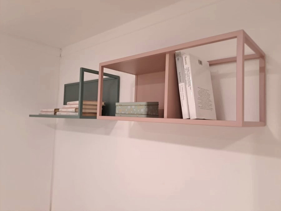 L’armadio è composto da un modulo angolare (109,3 x 103,2 cm) e un modulo da 90 cm con 2 cassetti interni e 4 ripiani, garantendo una gestione ottimale dello spazio. A completare la struttura, due casellari in metallo da 60 cm aggiungono un tocco di stile e funzionalità.